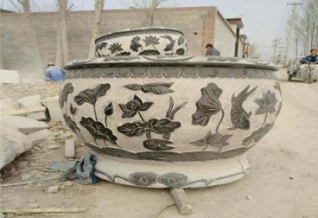 夢幻中式庭院青石浮雕荷花養(yǎng)魚水缸