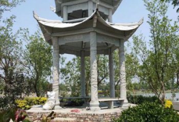 花崗巖雕刻柱擺放園林涼亭