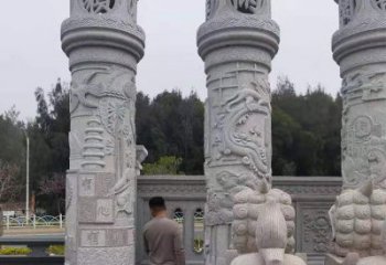 據史書上記載,堯時的誹謗木以橫木交于柱頭,指示大路的方向,裝點寺廟龍柱雕塑仍然保持了堯時誹謗木的基本形狀。龍柱雕塑都有一個蹲獸,頭向宮外。石雕龍柱雕塑是中華民族的傳統建筑物,有著悠久的歷史。相傳既有道路標志的作用,又有過路行人留言的作用,石雕龍柱雕塑就出現了。