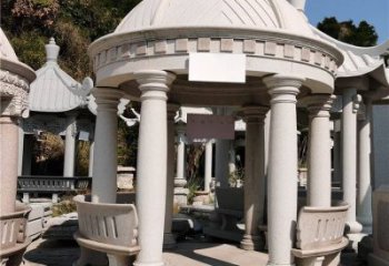 在平面和立體兩個方面對石雕亭子進行雕鑿和刻畫,能夠使石亭子體現(xiàn)多重的建筑石雕打造文化亭子雕塑。同時仿古建筑長廊打造亭子雕塑,是石雕亭子既能夠突出于環(huán)境,又能溶于環(huán)境。