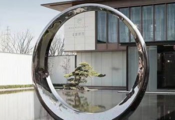 以水中的圓環(huán)為靈感,采用不銹鋼材質(zhì)制作,表面噴漆處理。適合放置在水邊,與水景相映成趣。