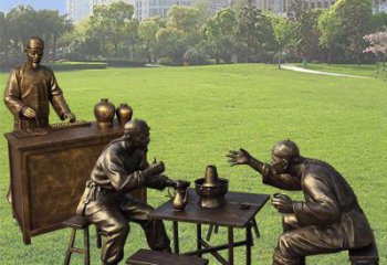 這是傳統銅雕民俗雕塑,呈現 “河口碼頭” 場景,三位勞動者以不同姿態搬運貨物,寫實造型還原舊時勞作風貌,傳承地域歷史與勞動文化。