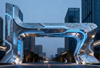 主體采用不銹鋼雕塑工藝,打造出如液態銀浪般流暢且富有動感的曲面形態,表面鏡面拋光,可映射天光云影與周遭環境;背景輔以鏤空金屬網格構造的山水輪廓,虛實相生,層次豐富。雕塑坐落于圓形水臺,水紋因雕塑存在形成漣漪,金屬光澤與水光交相輝映,視覺上極具張力,同時通過 “水 - 雕塑 - 光影” 的互動,營造出沉浸式觀賞體驗。作為一件景觀雕塑,它以不銹鋼雕塑的現代材質語言,重新詮釋自然山水與生命律動的關系。設計師借不銹鋼的強塑造性與耐候性,讓流動的金屬 “浪形” 成為時間與空間的載體,既呼應景觀環境的開闊感,又以工業材質的冷冽質感碰撞自然山水的溫潤意象,形成強烈視覺沖擊。讓觀者在金屬浪濤與虛擬山影間,讀懂現代景觀中藝術、技術與自然的共生之美。