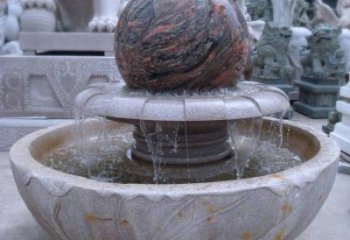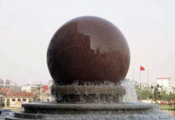家用小型晚霞紅風水球噴泉雕塑