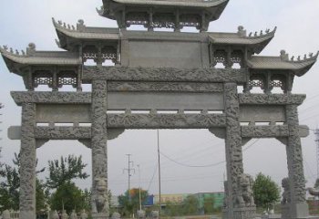 農(nóng)村大型石雕牌坊是一種特殊的藝術(shù)品,它位于農(nóng)場(chǎng)的村口,由大型石雕組成。牌坊的結(jié)構(gòu)是由上至下,以頂端的石頂為頂部,中間的石柱為支柱,底部的石基為底部,上面鑲嵌有各種花紋,具有較強(qiáng)的裝飾性。